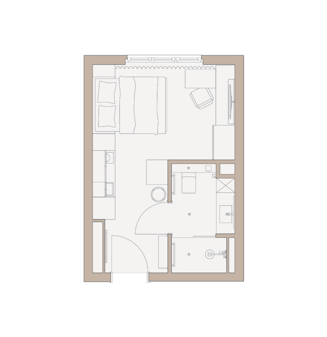Noch mehr Platz zum Wohlfühlen bieten die möblierten Ein-Zimmer-Wohnungen unserer comfy Kategorie. Diese sind etwas größer als basic Apartments und teilweise mit kleiner Terrasse ausgestattet. Wie alle Savvy Studios bieten die Apartments durchdachte Stauraum-Lösungen und hochwertige Ausstattung. Ein geräumiges Badezimmer ergänzt den offenen Schnitt der Wohnung.