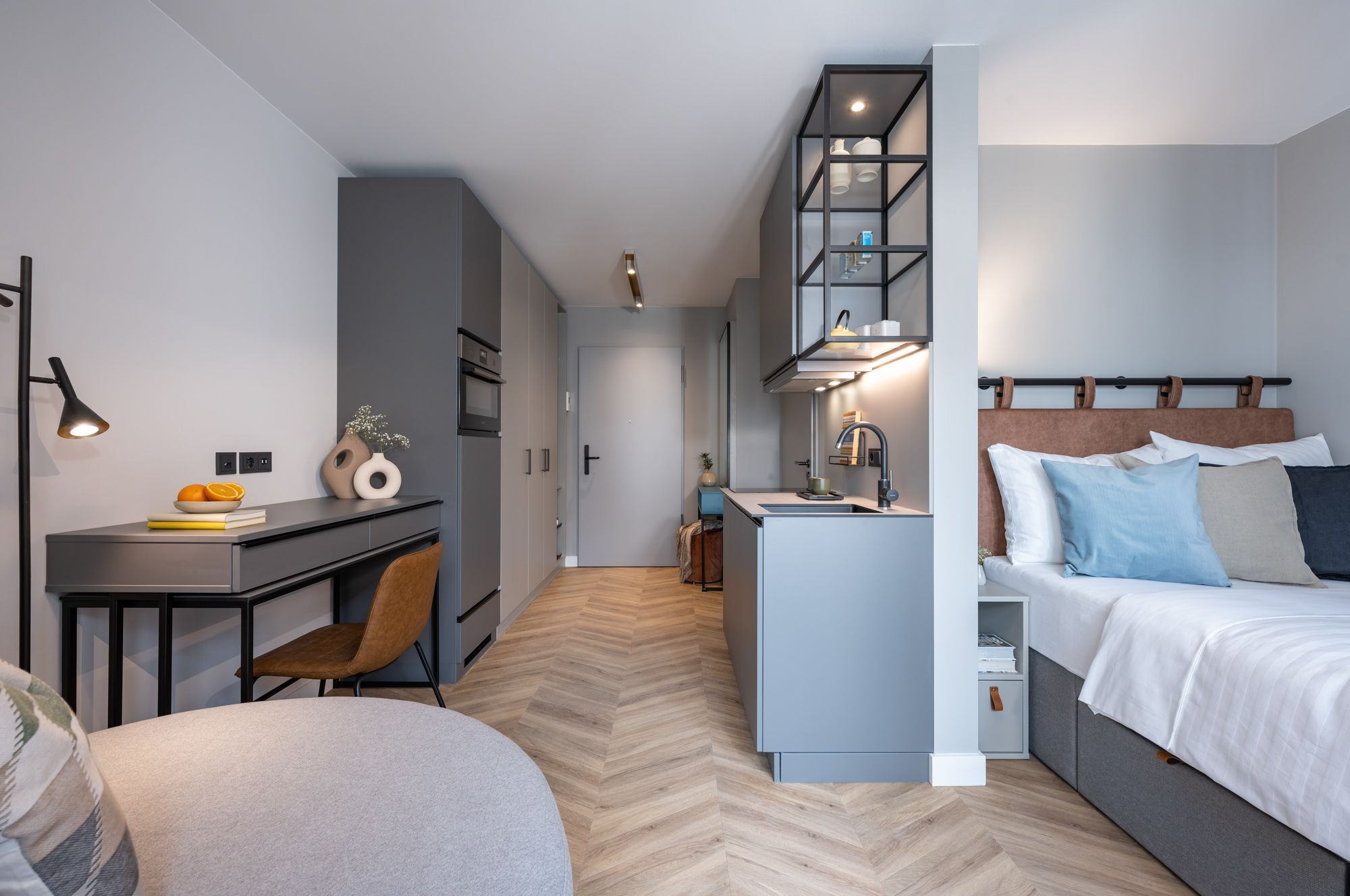 Savvy is a new residential building (opening May 2022) in Friedrichshain offering furnished one-bedroom flats for rent.
