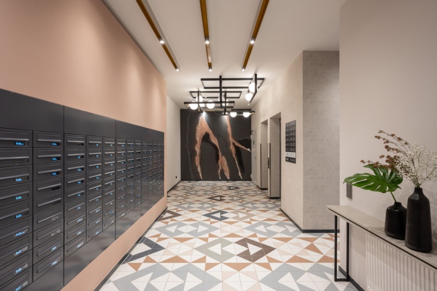 Das Haus verfügt über eine großzügige Lobby im zeitlosen Design und einen begrünten Innenhof mit Sitzmöglichkeiten. Im Erdgeschoss befindet sich außerdem das Restaurant Sir Helga, das eine hochwertige, regional orientierte Küche bietet. Das Restaurant soll den Mietern als ein zweites Wohnzimmer dienen, hier kann man in Ruhe arbeiten, sich mit Nachbarn austauschen oder Gäste empfangen.